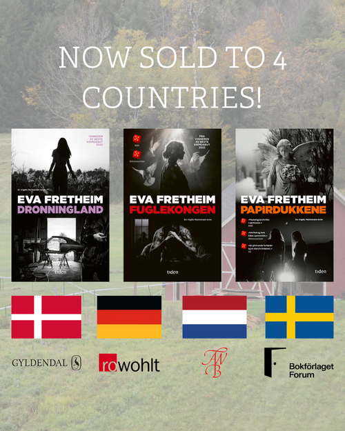 Eva Fretheim’s books have now been sold to FOUR countries! The latest publishers to acquire this crime series are Bokförlaget Forum in Sweden and A.W. Bruna Uitgevers in the Netherlands, following earlier deals with Gyldendal (Denmark) and Rowohlt (Germany).