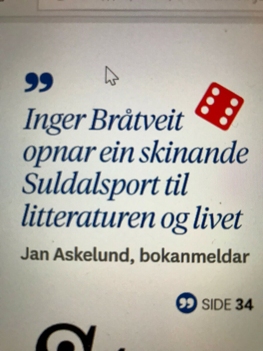 Inger Bråtveit opens a gleaming window on literature and life, says Jan Askelund in Stavanger Aftenblad and praises The Art of Swimming with a wonderful reading of this strong and ambitious novel.