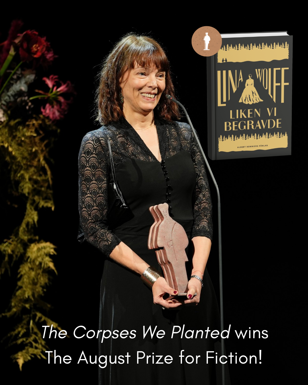 Hipp hipp hurrah! Lina Wolff ’s The Corpses We Planted (Liken vi begravde, Albert Bonniers förlag) has won this year’s prestigious August Prize for Fiction in Sweden! We couldn’t be happier that this incredible novel—now sold to 7 languages—is getting the recognition it deserves.